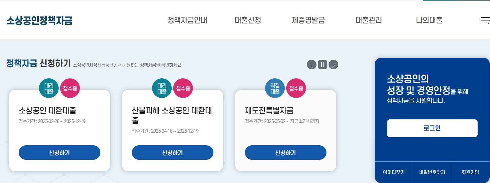 - 소상공인정책자금 통합관리시스템 접속